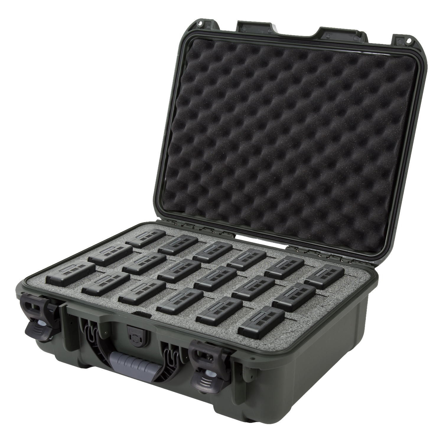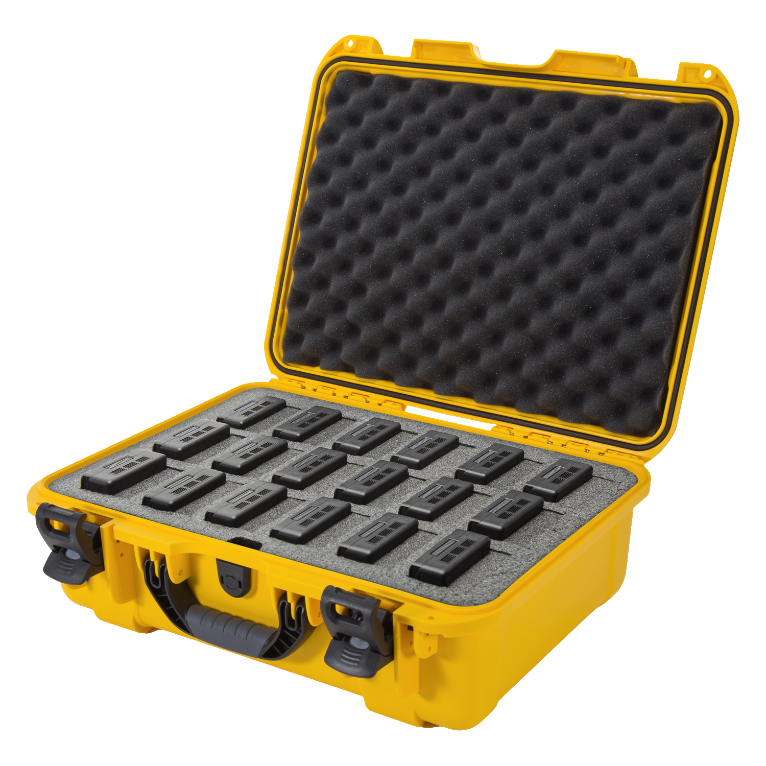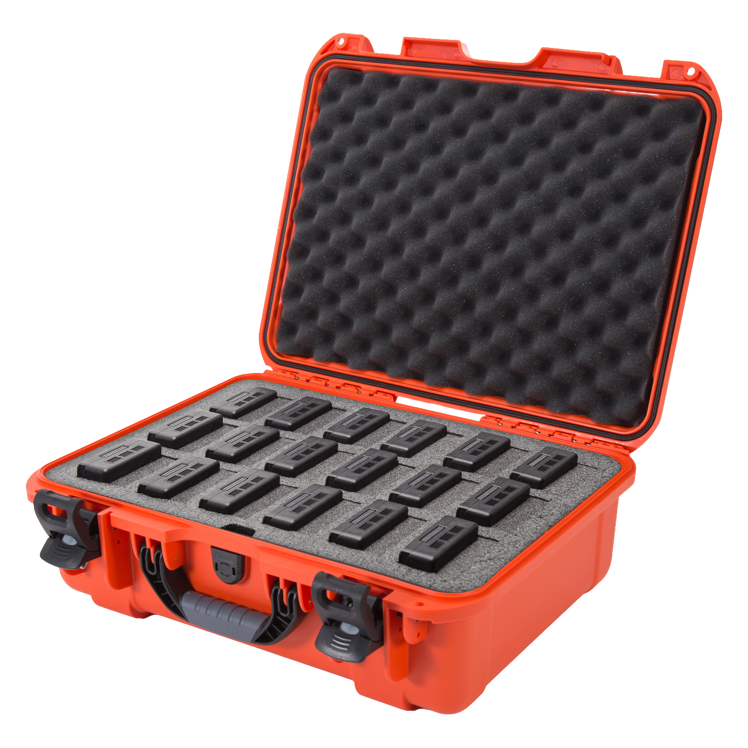 The high-density closed-cell foam insert is pre-cut to securely hold up to 18 DJI™ TB55 or TB50 batteries, along with charging accessories such as cables and adapters. This layout keeps each battery isolated, organised, and protected, reducing the risk of short-circuits, damage, or disarray during transport or storage.