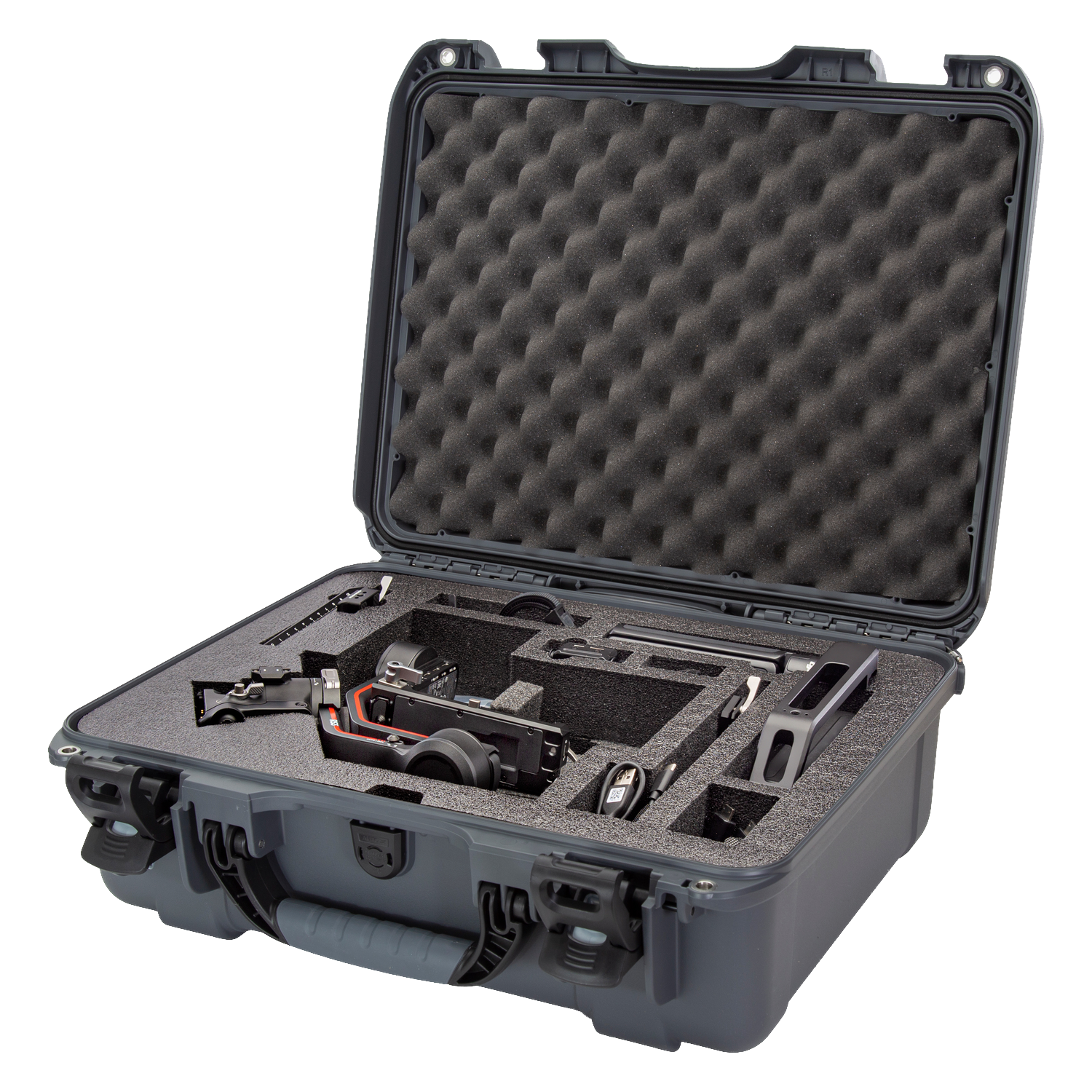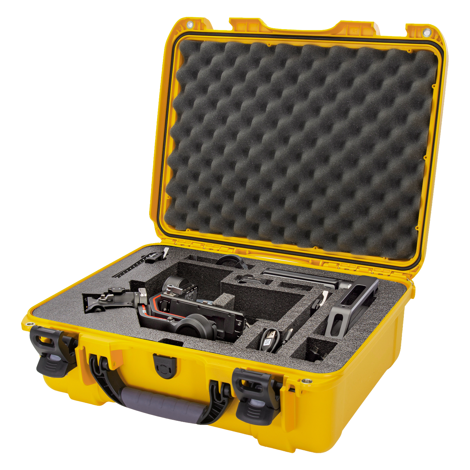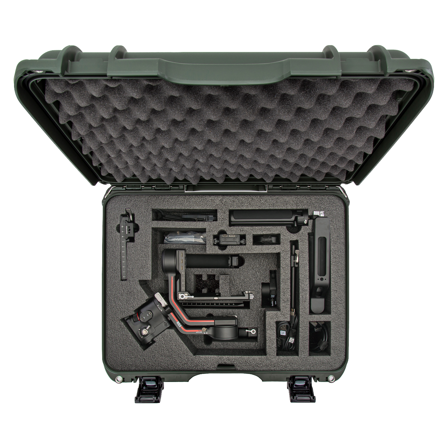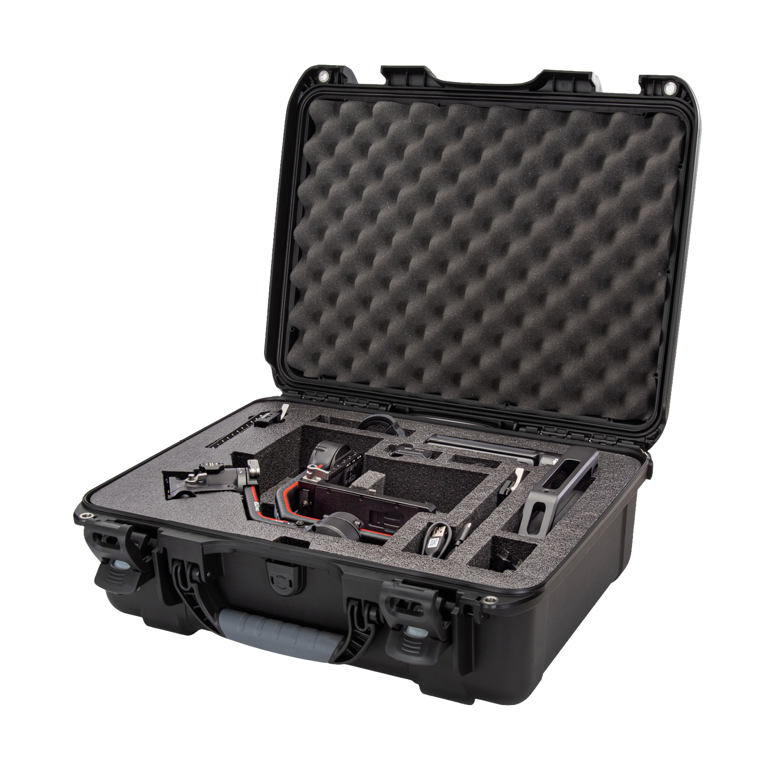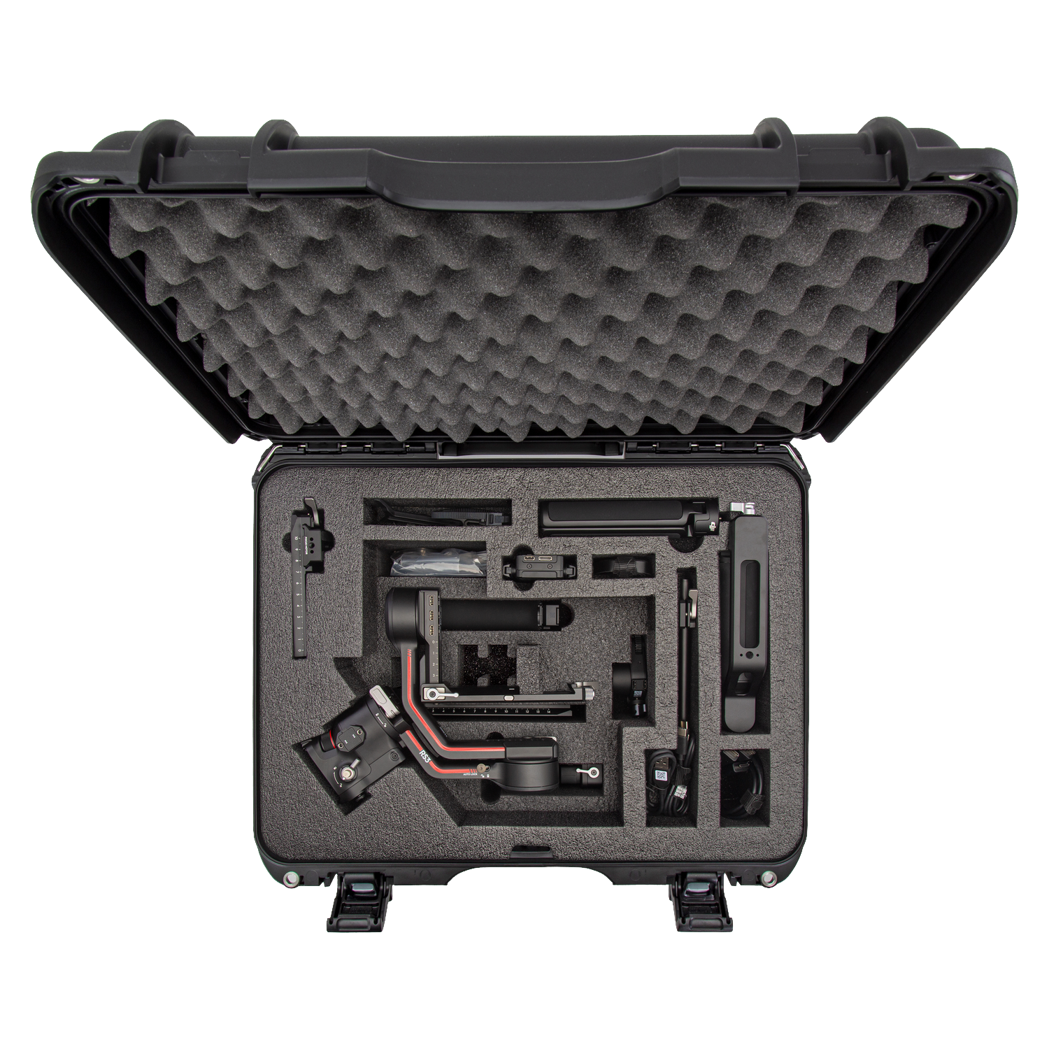 The high-quality closed-cell foam is precisely pre-cut to fit the DJI™ RS 2, RS 2 Pro, RS 3, or RS 3 Pro as a Combo or non-Combo. The intelligent design ensures all delicate parts remain in place and fully organised, providing compartmentalised protection for the gimbal, BG30 grip, Lens-Fastening Support, extended grip or tripod, quick-release and lower plates, Ronin image transmitter, focus motor with rod mount kit, briefcase handle, phone holder, multiple cables, and other accessories.