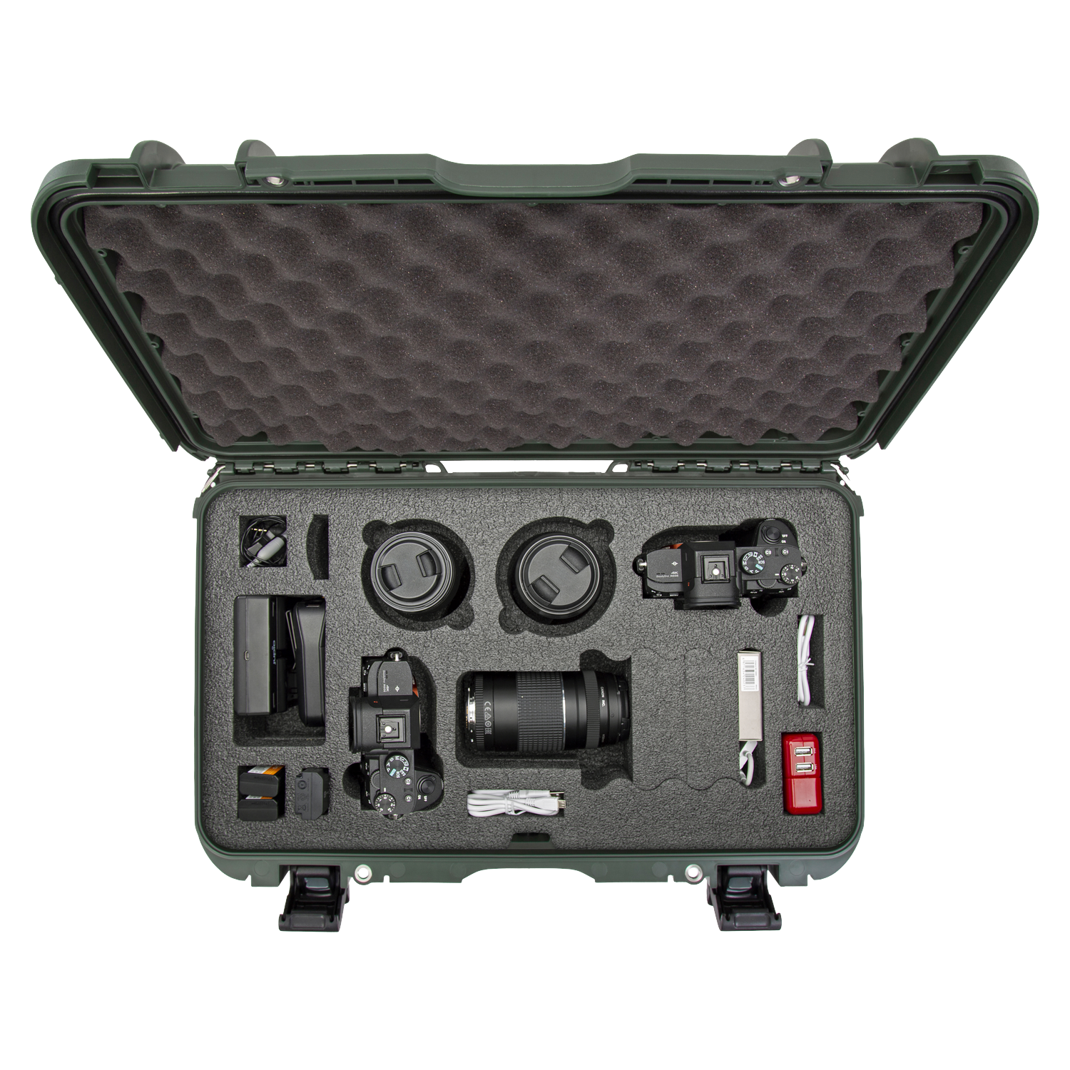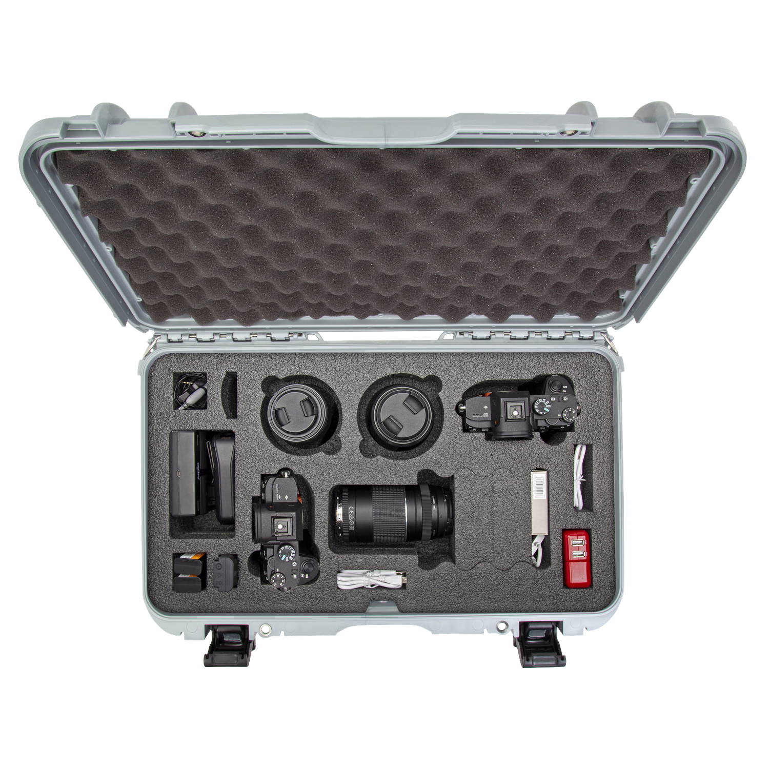 Protect and organise your DSLR and mirrorless cameras with the Nanuk 935. Custom pre-cut foam holds two camera bodies, multiple lenses including 16-35mm and 24-70mm, batteries, and accessories. With a rugged NK-7 resin shell, PowerClaw latches, retractable handles, and a watertight design, this MIL-Spec case ensures your photography gear stays safe and travel-ready.