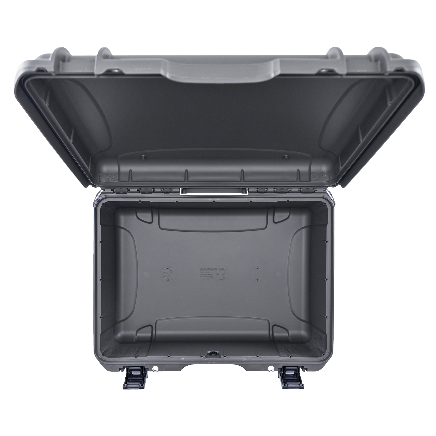 The NANUK 940 uses the patented PowerClaw latching system to ensure the case never opens unexpectedly. Stainless-steel hardware and reinforced hinges provide added security, keeping your equipment safe during transport, travel, or storage.